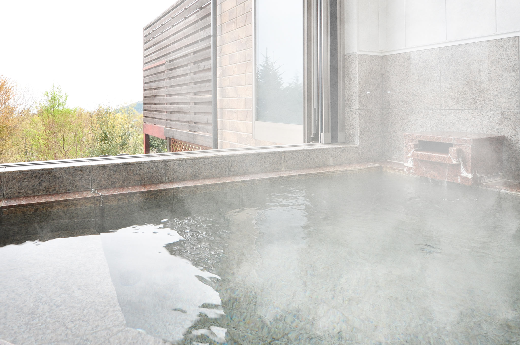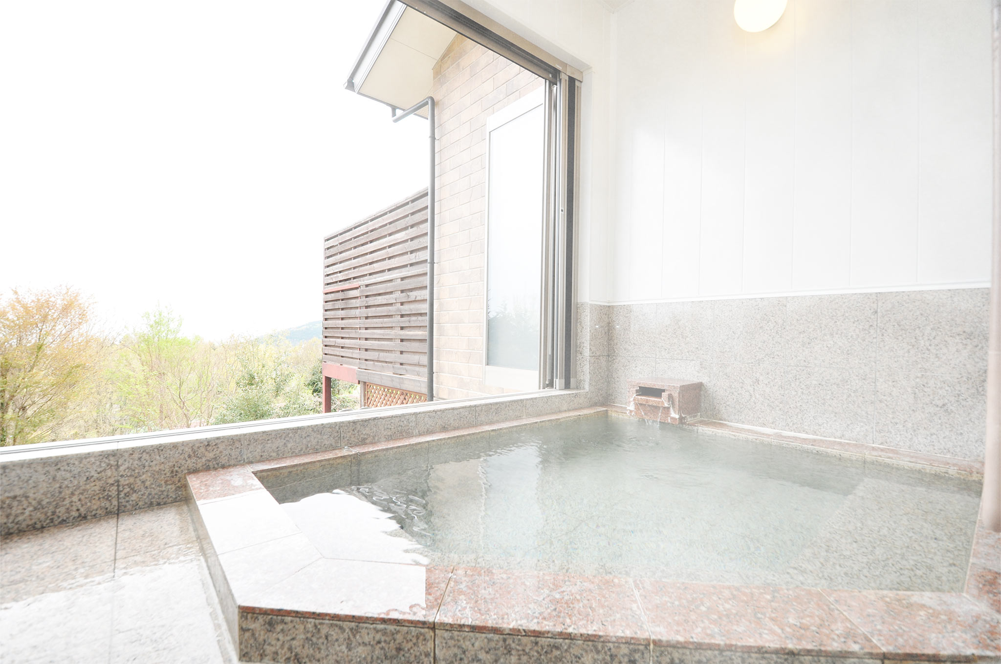 高台からの眺めを楽しめる、完全プライベート仕様の展望風呂です。 扉を閉めた瞬間から、お時間いっぱいまでご利用組数様だけの空間となります。大きな窓からは、天気の良い日には伊豆高原の景色(海・山・星空など)を一望いただけます。